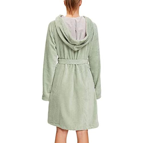 Esprit Bademantel Damen Cosy mit Kapuze, Soft green