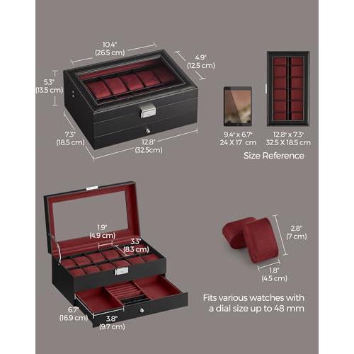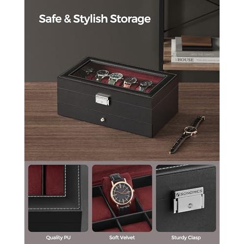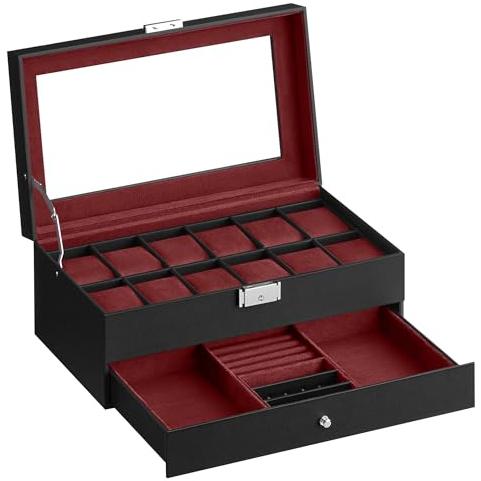 Caja de Reloj Cristal de 2 Niveles para 12 Relojes