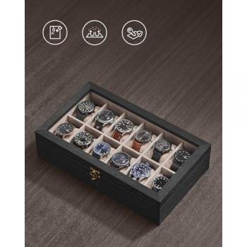 Caja de Relojes SONGMICS: 12 Ranuras, Estuche 2 Niveles, Tapa de Cristal