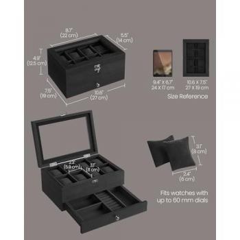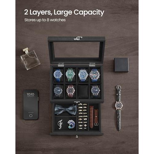 SONGMICS Caja de relojes con 8 compartimentos y 1 cajón