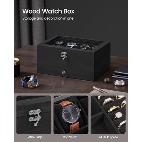 Caja de Relojes SONGMICS: 12 Ranuras, Estuche 2 Niveles, Tapa de Cristal