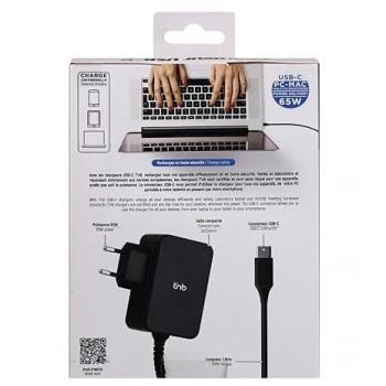 Cargador T’nB 65 W con cable de 180 cm y enchufe de pared – Negro