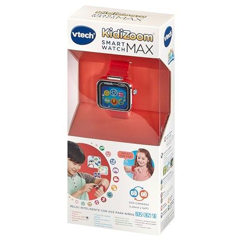 VTech Kidizoom Smartwatch MAX Rojo, Reloj Inteligente para niños, Doble cámara de Fotos, vídeos, Juegos, Pantalla táctil Horizontal, Versión ESP