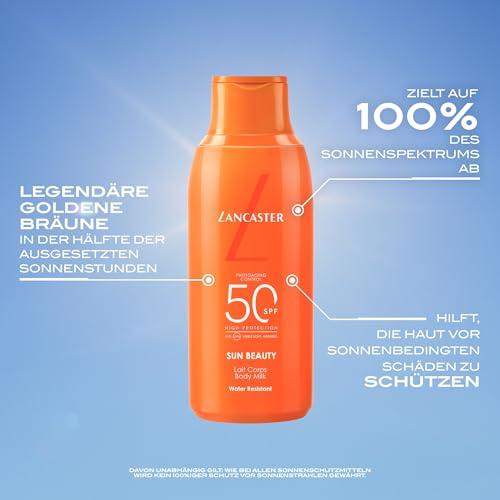 LANCASTER Sun Beauty Body Milk SPF50 Sunscreen - Con complejo activador del bronceado - Tecnología Full LightTM para una protección solar de espectro muy amplio - Formato de viaje