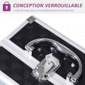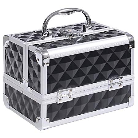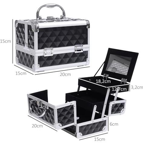 HOMCOM Maletín de Maquillaje Organizador Cosméticos Profesional Estuche de Maquillaje Caja de Belleza Portátil Con Cerradura Varios Compartimientos 20x15x15cm Aluminio