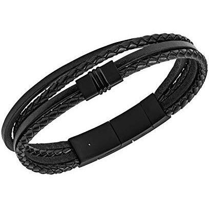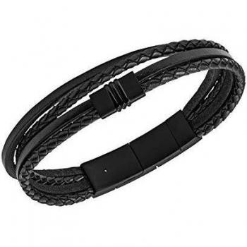 Fossil - Pulsera Fossil de multihebras de piel color negro y acero inoxidable..