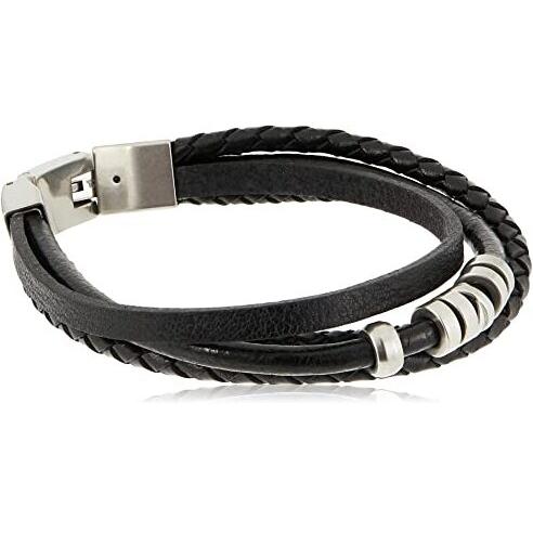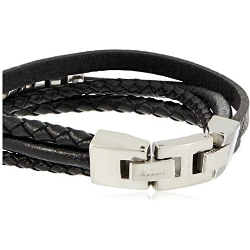 Fossil - Pulsera de hombre vintage casual de cuero negro