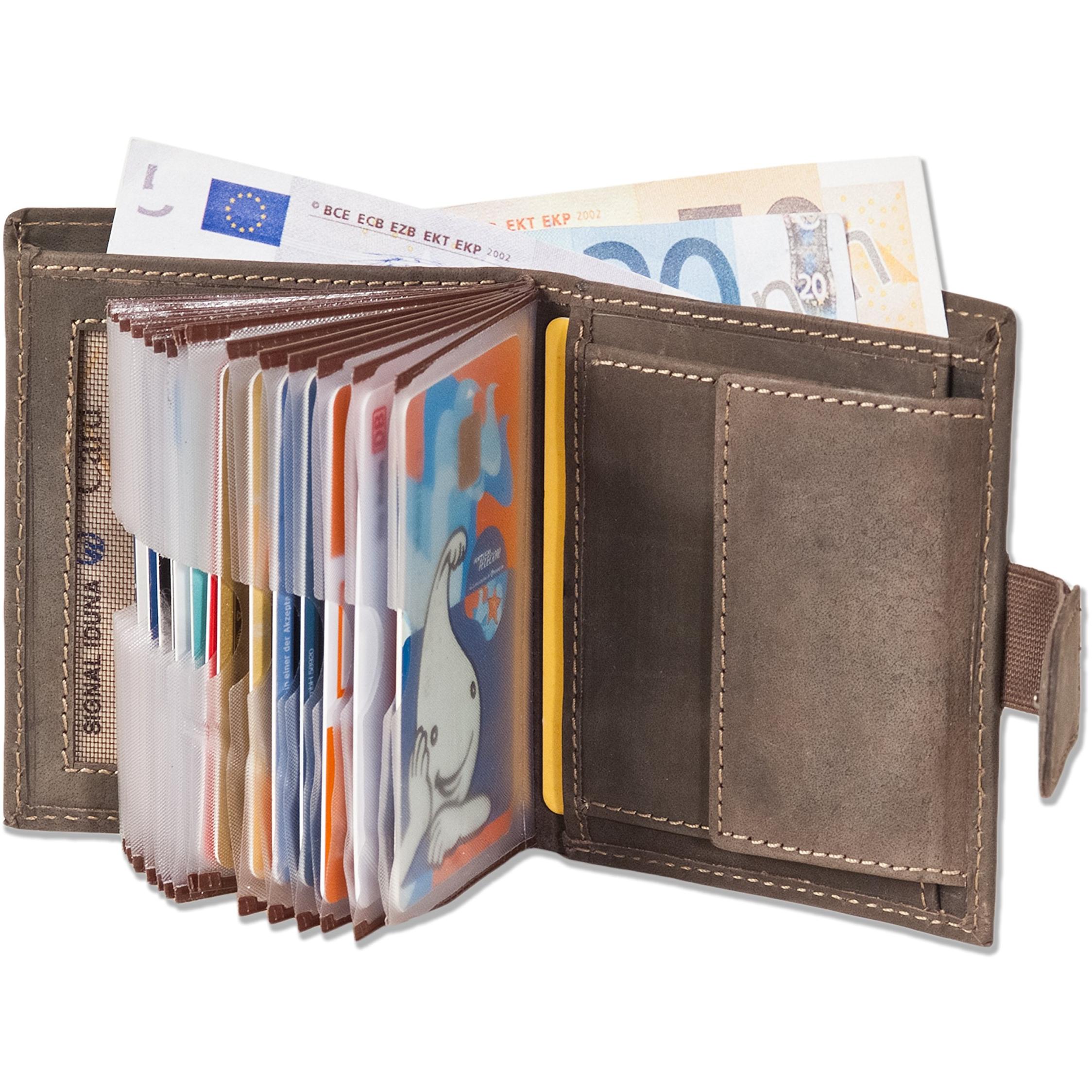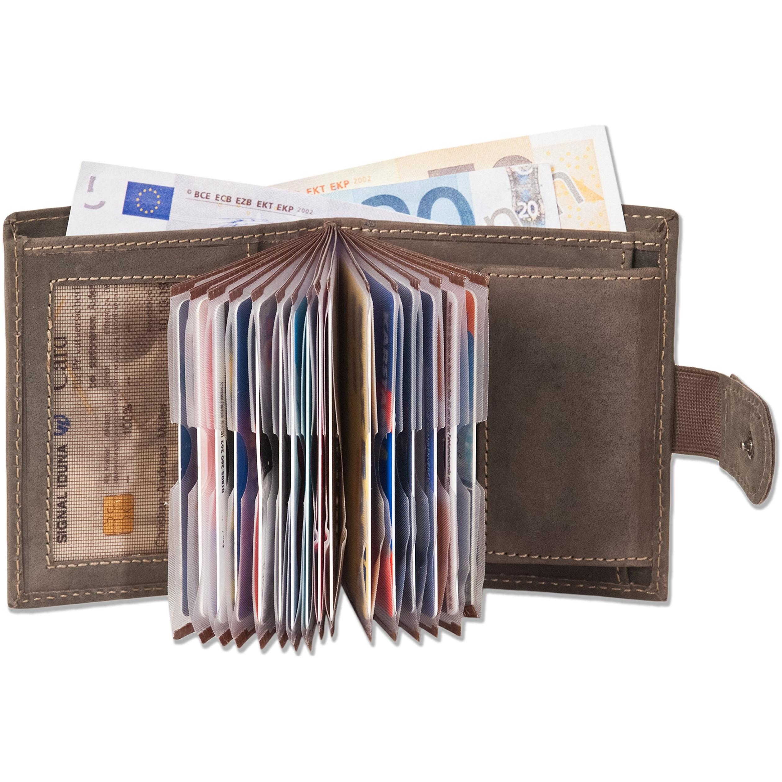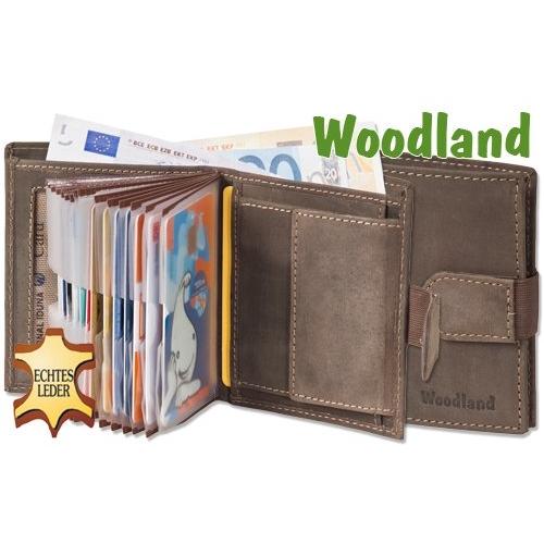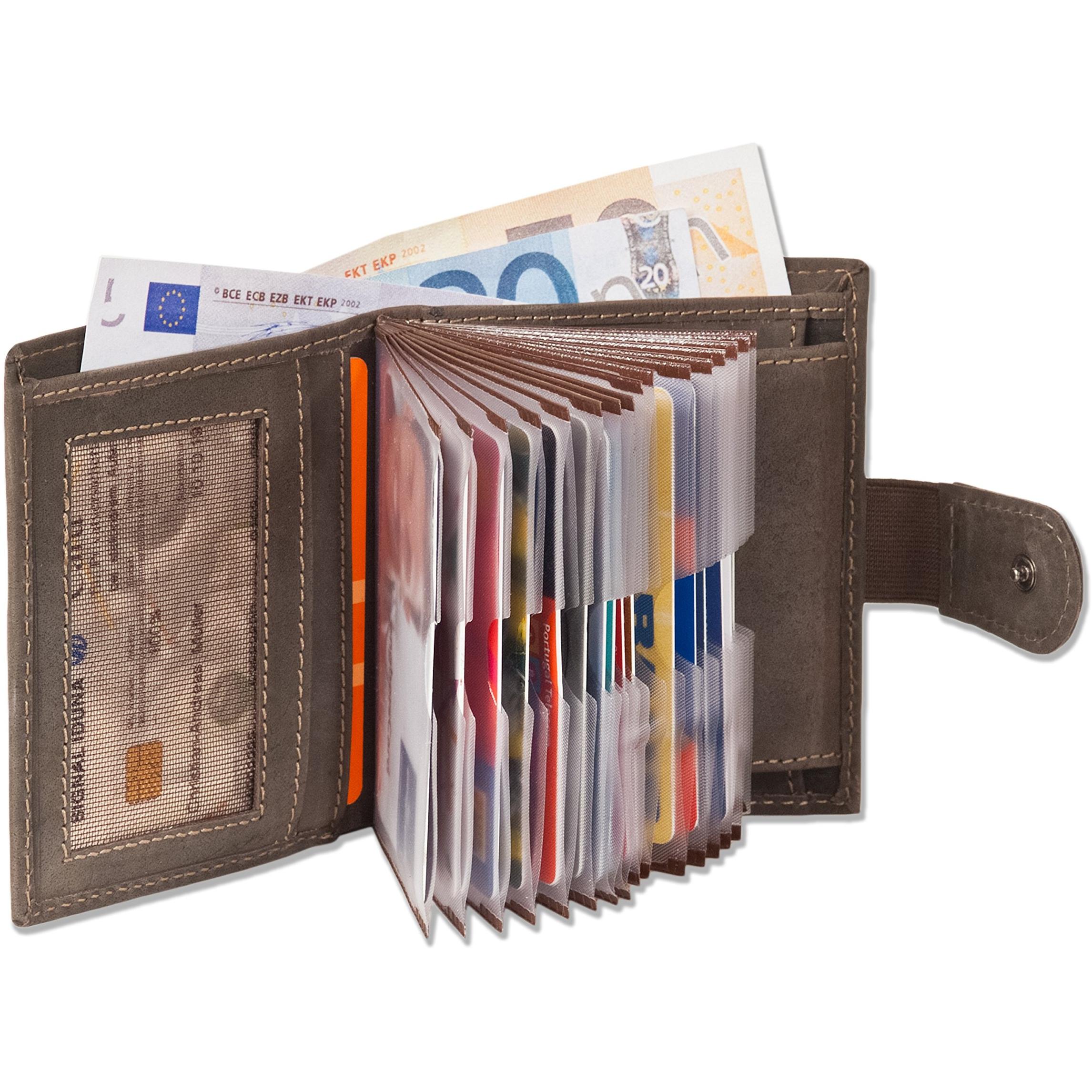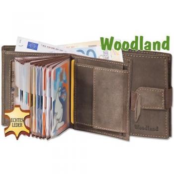 Woodland - Billetera Super-Compacto con XXL tarjeteros para 18 Tarjetas de Cuero de búfalo Natural en Marrón Oscuro / Taupe