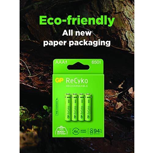 Gp recyko pack de 4 pilas recargables 650mah aaa 1.2v - precargadas - fabricadas con mas del 10% de materiales reciclados