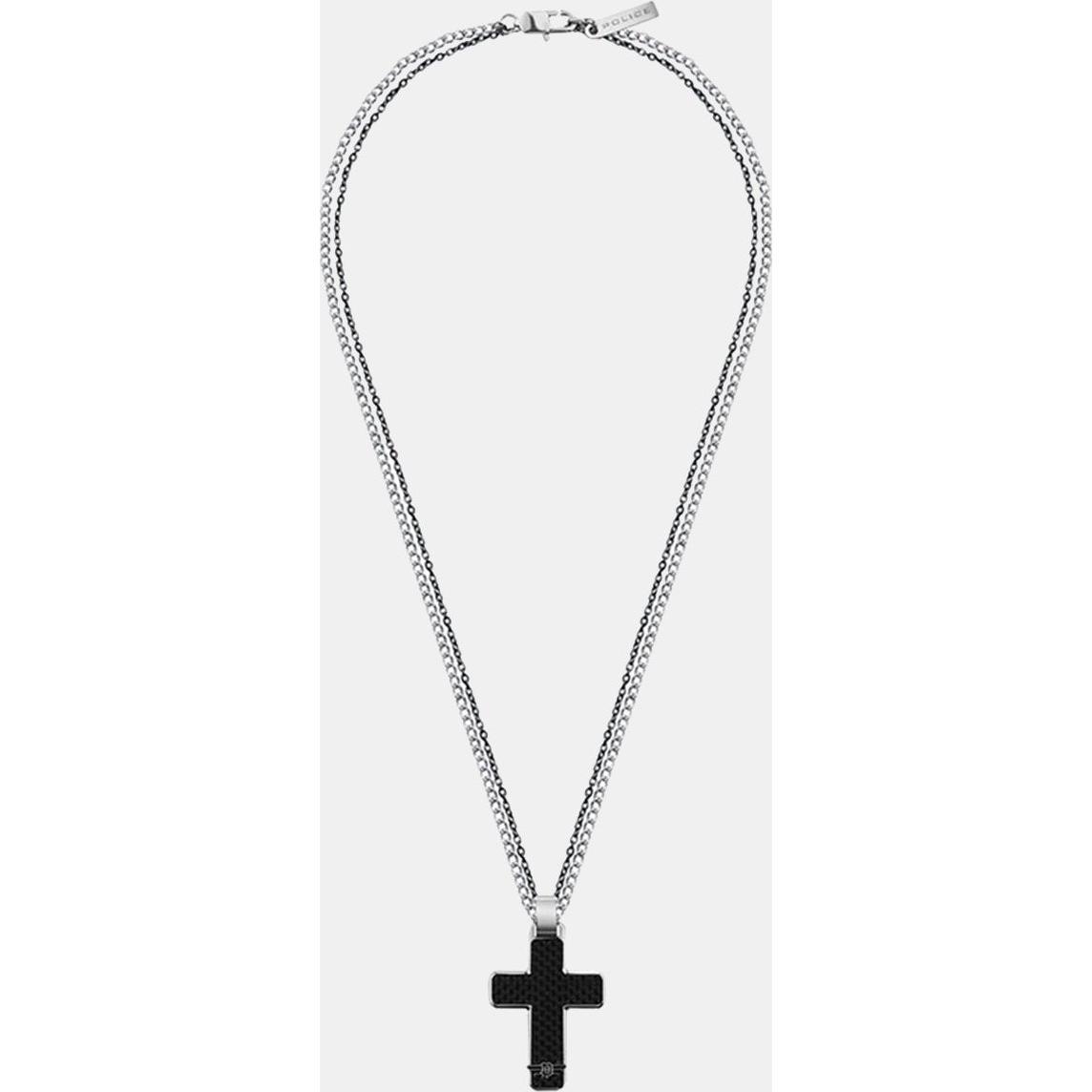Police Collar Hombre Hinged Necklace Ss Carbon Cross 500mm De Acero Negro, Plateado