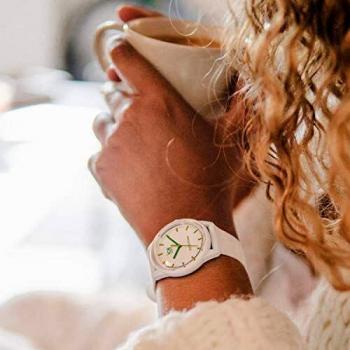 Reloj solar femenino blanco con correa de silicona flexible, diámetro 36 mm; su esfera clara se ilumina al sol, ofreciendo tiempo preciso sin bater ...