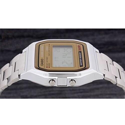 Reloj Casio Vintage Unisex Iconic Plateado Esfera Dorada A158WEA-9EF