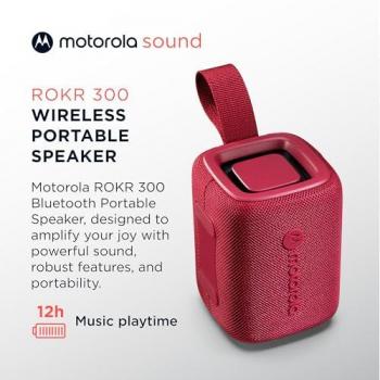 Motorola Sound - Rokr 300 Altavoz Bluetooth 5.3 – Altavoz Inalámbrico Portátil 7w – Altavoz Compacto Ip67 Resistente Al Agua Y Al Polvo – 12h De Duración, Color Rojo