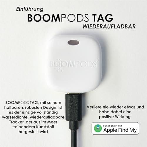 Boompods Boomtag - Paquete de 4 etiquetas inteligentes recargables con Bluetooth, buscador de llaves sostenible y etiqueta de seguimiento GPS para equipaje, niños, cartera, compatible con Apple Find