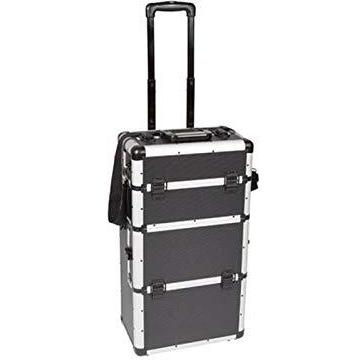 Perel Maletín de herramientas con ruedas aluminio negro, trolley con mango telescópico, 3 compartimentos con organizador y bandeja interior, cerradura con 2 llaves, 370 x 225 x 670 mm, 66,9 l