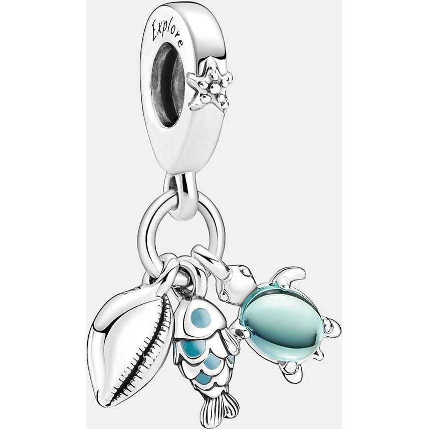 Pandora Charm Colgante Triple Pez, Tortuga Marina Y Concha en Plata de Ley