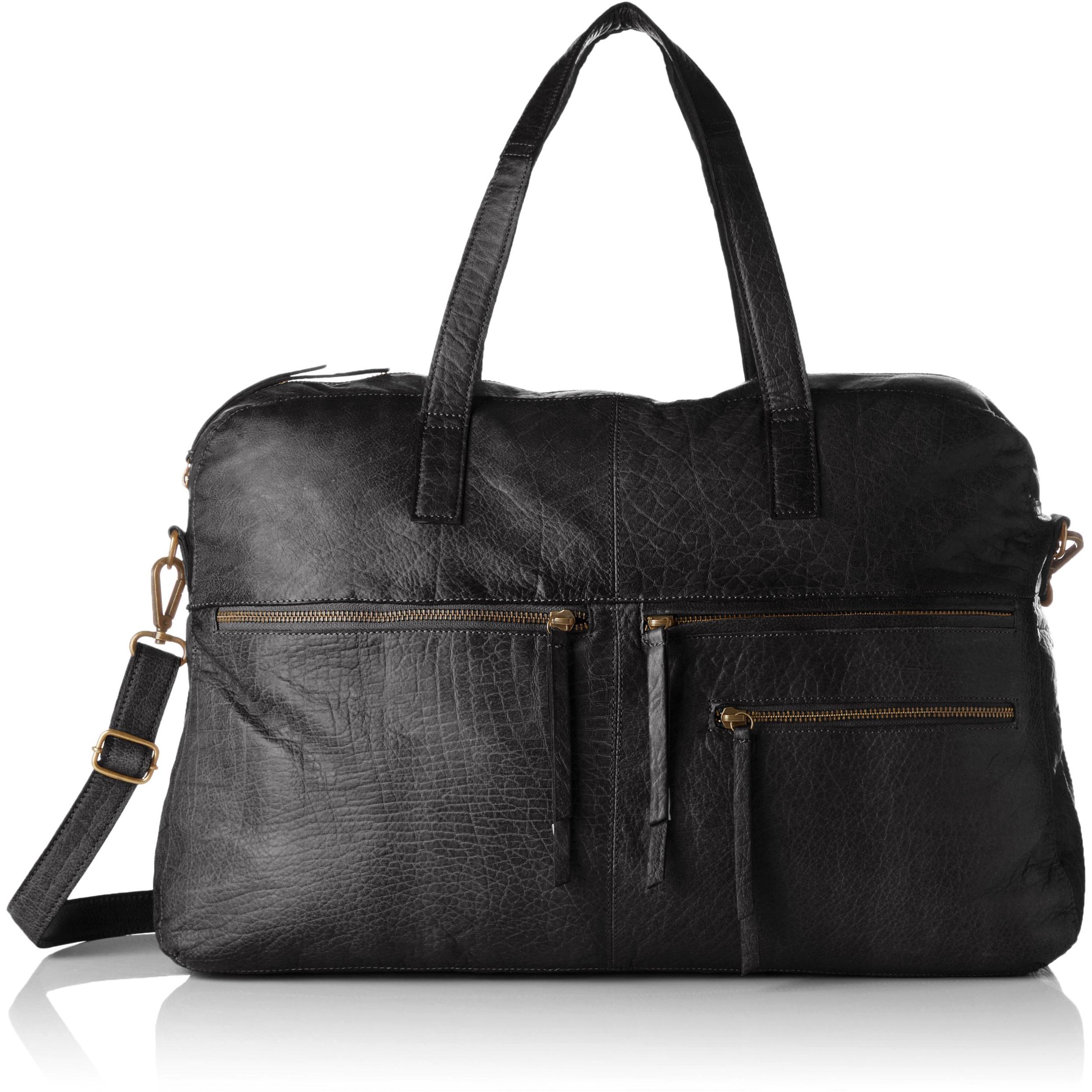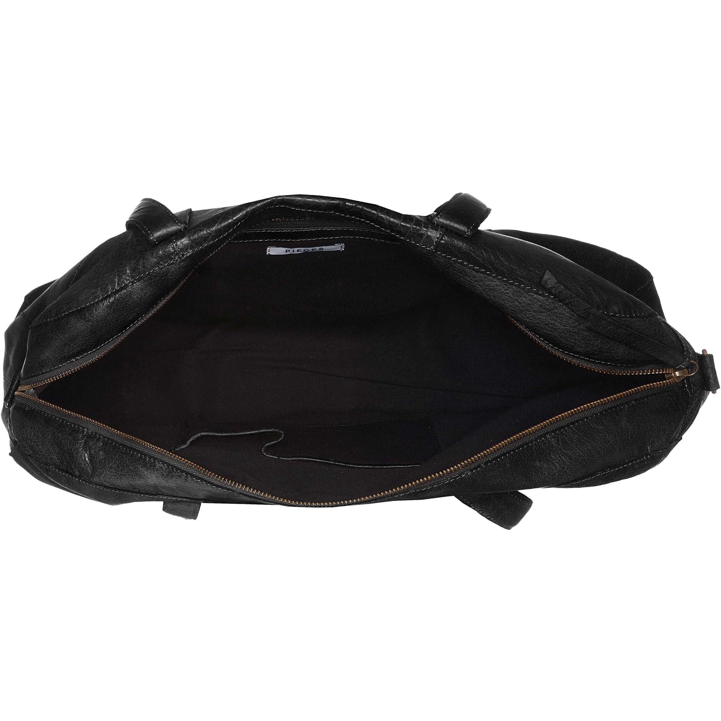 PIECES - Pckimono Leather Weekend Bag, Bolsa de fin de semana de cuero, Schwarz (Negro), 13x34x43 cm (B x H T)