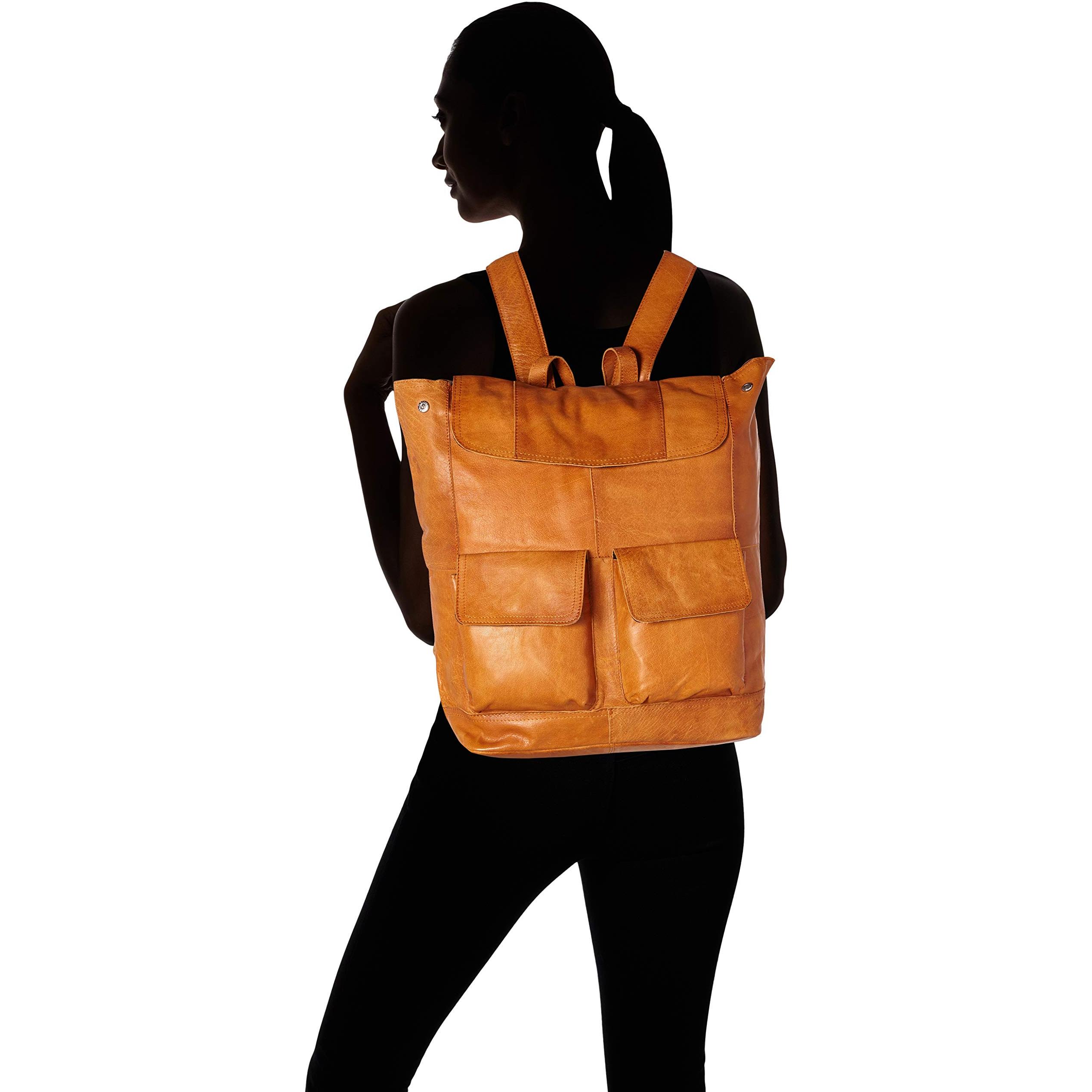 Pieces - Pctalula Leather Backpack, Women's Leather Backpack, Brown (Cognac), 15 x 38 x 41 cm (W x H x D)