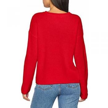 PIECES Pcmarie LS O-Neck Knit Noos suéter, Rojo (Aura Orange), Talla S para Mujer