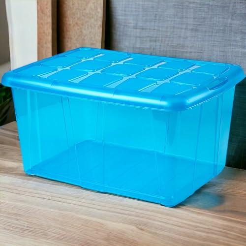 Caja de almacenamiento, pongo todo ropa, Hogar, 60L litros organizador Impermeable (Azul Translúcido) COSHANO