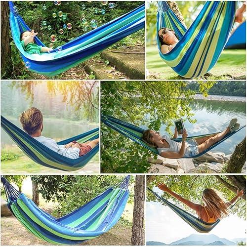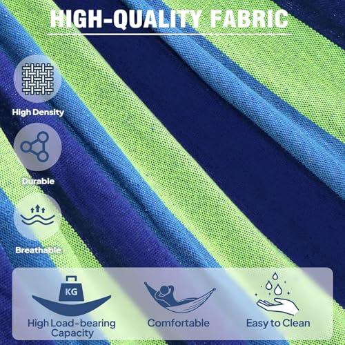 Hamaca Colgante Tela con Travesaños de Madera, 275 x 155 cm Hamaca Jardin Exterior Hamaca Camping (Multicolor - B) COSHANO