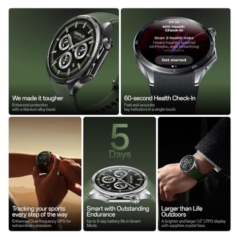 Reloj Inteligente OnePlus Watch 3 de 46 mm OPWWE251 con Pantalla LTPO de 1.5'', Carga Rápida, 120 Horas de Duración, 100 Modos Deportivos, GPS de Doble Frecuencia