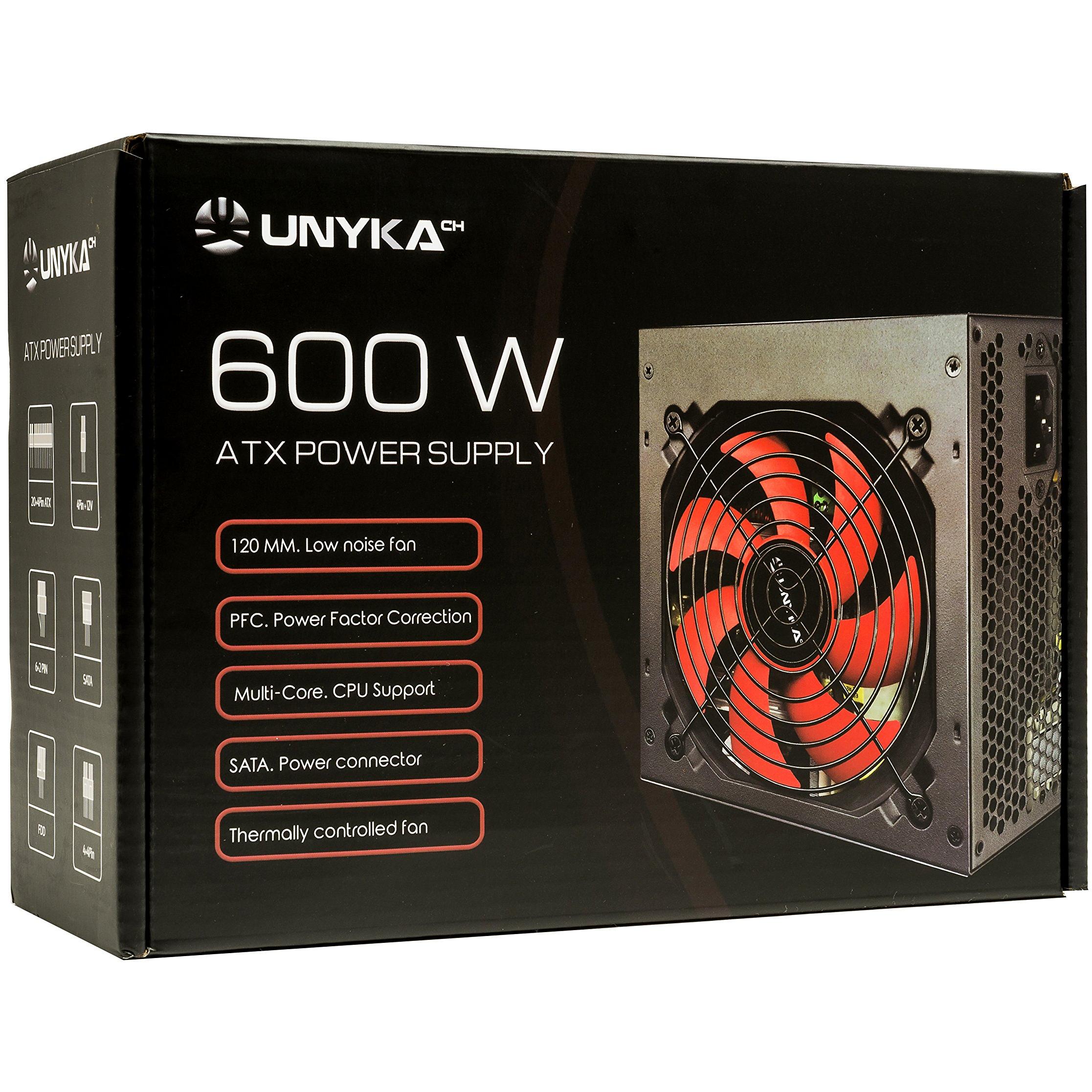 UNYKAch Fuente de Alimentación ATX 600W con Ventilador 120 mm Ultra Silencioso y Corrector de Potencia