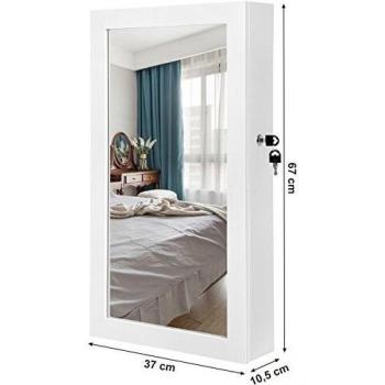 SONGMICS Espejo Joyero Colgante, Armario para Bisuterías Montado en Pared, con Imán y Llaves, Blanco JBC51W