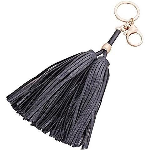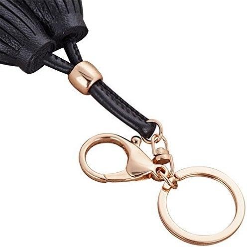 Beetest Cuero Doble Borla Llavero Rotativo Negro