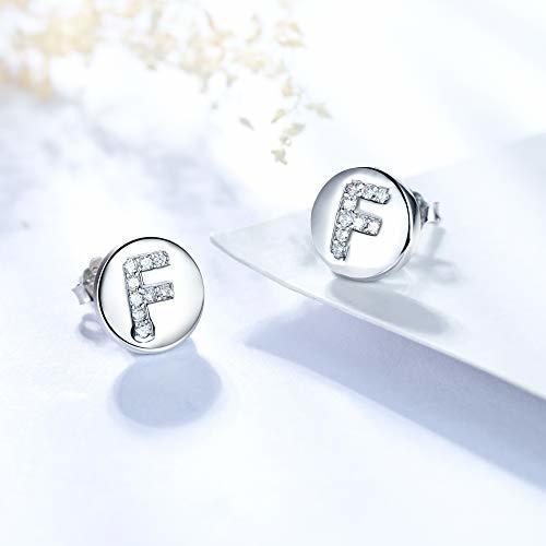 Pendientes Letra Inicial F Plata de Ley 925 Hipoalergénicos con Circonita Cúbica