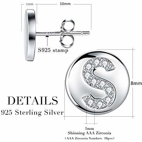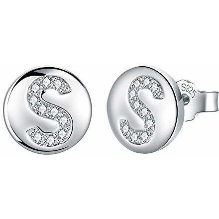 Pendientes Letra Inicial S Plata de Ley 925 Hipoalergénicos con Circonita
