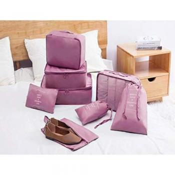 DoGeek Organizador de Equipaje 8 en 1 Set Viaje con Bolsa de Zapato, Impermeable Organizador de Maleta Bolsa para Ropa Sucia de Viaje, Material Nylon (Rosado)