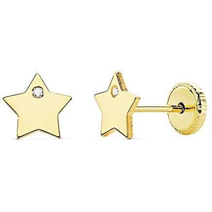 Inmaculada Romero Pendientes Oro 18k Niña Estrella Lisa Circonita Cierre Tuerca