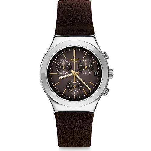 Reloj SWATCH BROWNFECT de 40 mm con caja cromada y correa de cuero marrón que aporta un aire sofisticado a cualquier atuendo; su movimiento de cuar ...