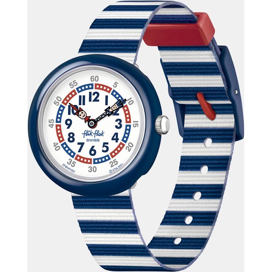Flik Flak - Reloj de niño Little Boat FBNP193 de PET reciclado blanco y azul.
