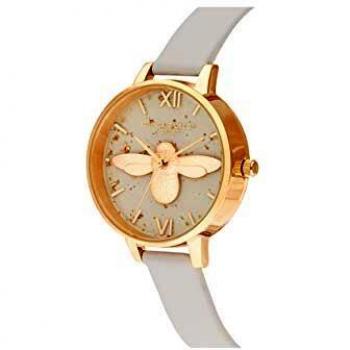 Elegante reloj de mujer con esfera de 34 mm, diseño celeste y detalle de abeja en relieve, correa de piel sintética gris que combina estilo clási ...