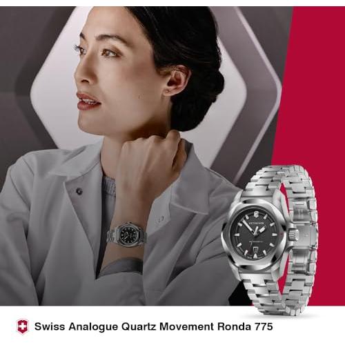 VICTORINOX Reloj Pequeño Analógico Resistente al Agua Esfera Negra Pulsera de Acero Inoxidable Caja de Acero Inoxidable Correa de Repuesto 5 Años de Garantía Cuarzo Marca Negro negro