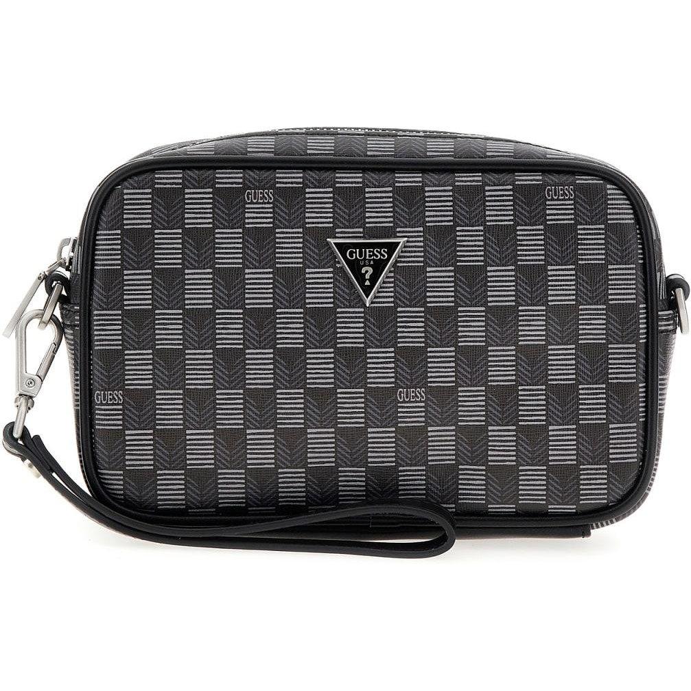 GUESS Bolso mano negro con estampado cuadros y logo metalico frontal