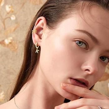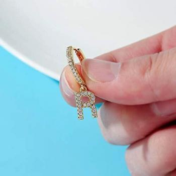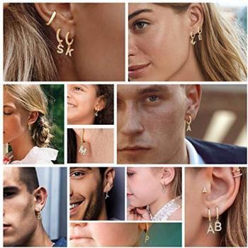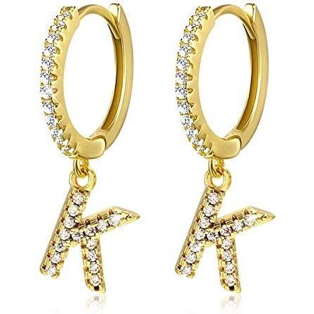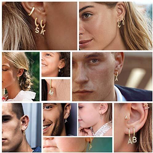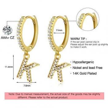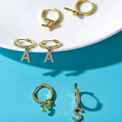 Pendientes de Aro con Letras para Mujeres, 14k Oro Chapado y Circonita