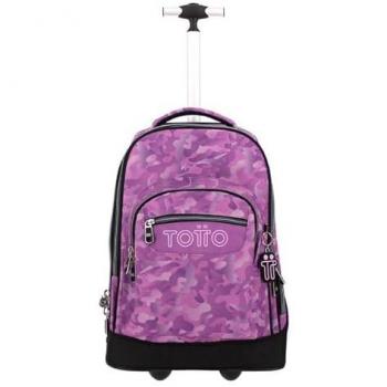TOTTO - Pack Escolar X2 Camuflaje Rosa - Mochila Escolar de Ruedas Papel y Estuche Escolar de Tres Compartimentos Pluma