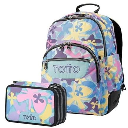 TOTTO Pack Escolar Flores Hawaianas - Mochila Rayol y Estuche Pluma