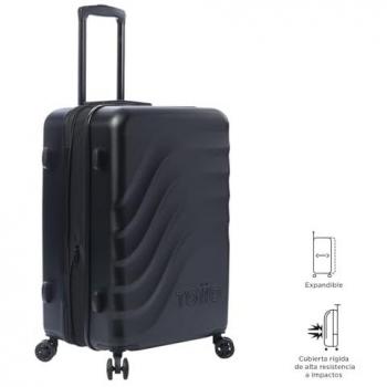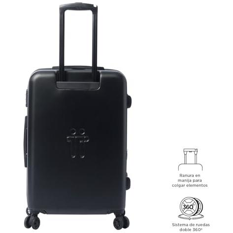 La maleta rígida mediana TOTTO Bazy+ en negro combina resistencia a impactos con una capacidad expandible de 64 L, ruedas giratorias 360° y manija ...