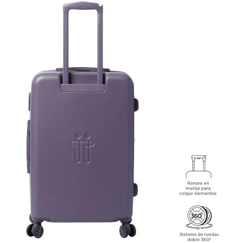 Maleta rígida mediana TOTTO Bazy+ M Montana Grape en policarbonato, 64 litros de capacidad, expandible, resistente a impactos, ruedas 360 grados, man ...