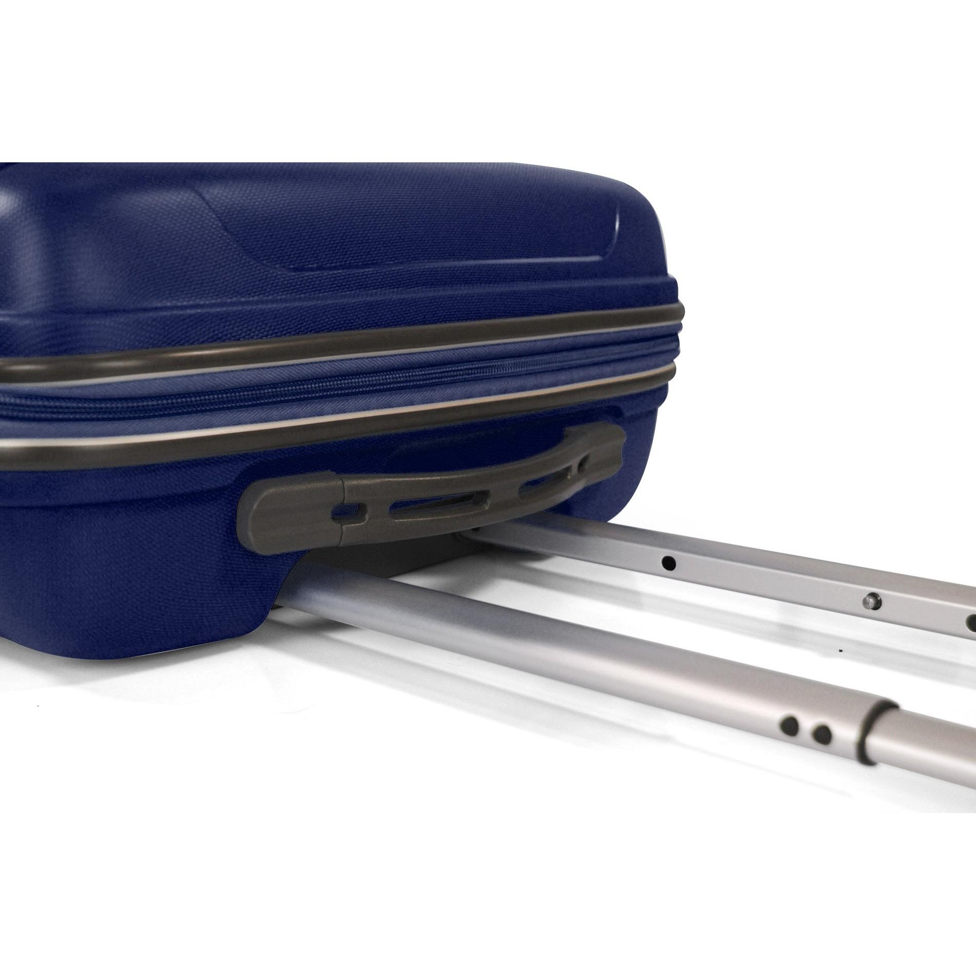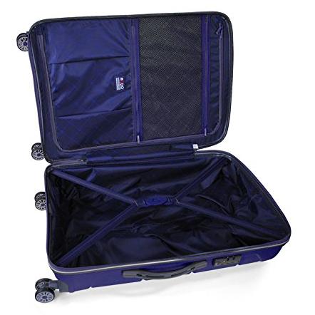 Con su elegante tono azul y construcción de polipropileno resistente, este trolley de 80 litros ofrece amplio espacio para equipaje y accesorios es ...