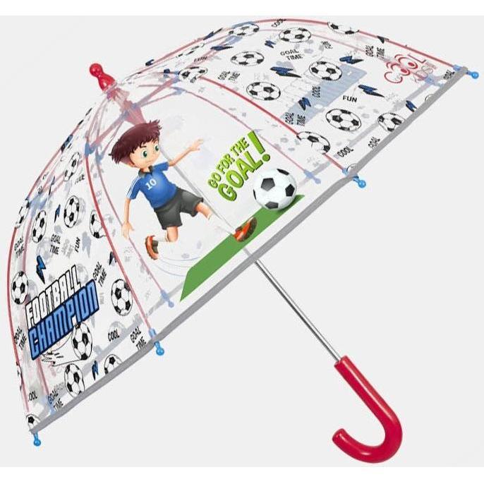 Perletti - Paraguas infantil largo manual transparente con dibujo de futbol