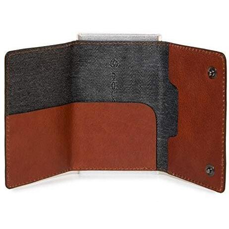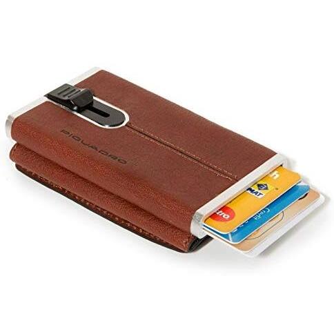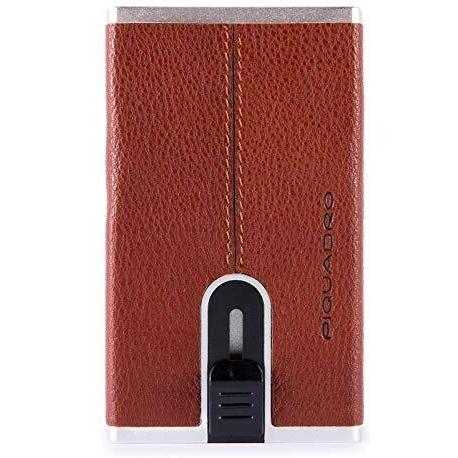 Piquadro Porta Tarjetas de Crédito de Cuero Marrón con Sistema de Deslizamiento Cuadrado PP4891B3R Hombre