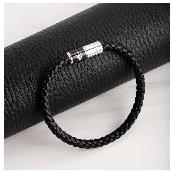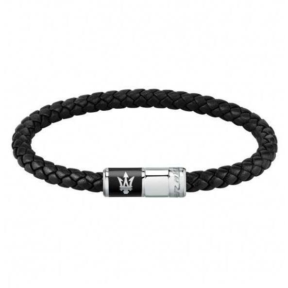 Maserati Pulsera Hombre Maserati J Br.blk Recycle Leather 217mm De Acero Negro, Plateado