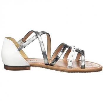 Las sandalias Geox D Sozy C1Z1A para mujer y niña presentan un diseño contemporáneo en blanco y plata oscuro, ideal para realzar cualquier atuendo. ...