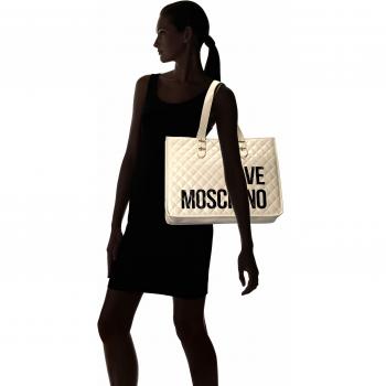 Bolso tipo tote Love Moschino Borsa Quilted Nappa PU, Marfil