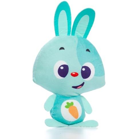 Un conejito de peluche azul de 7,5 cm que se ilumina y emite suaves sonidos cuando lo tocas; su superficie aterciopelada invita al tacto, mientras l ...